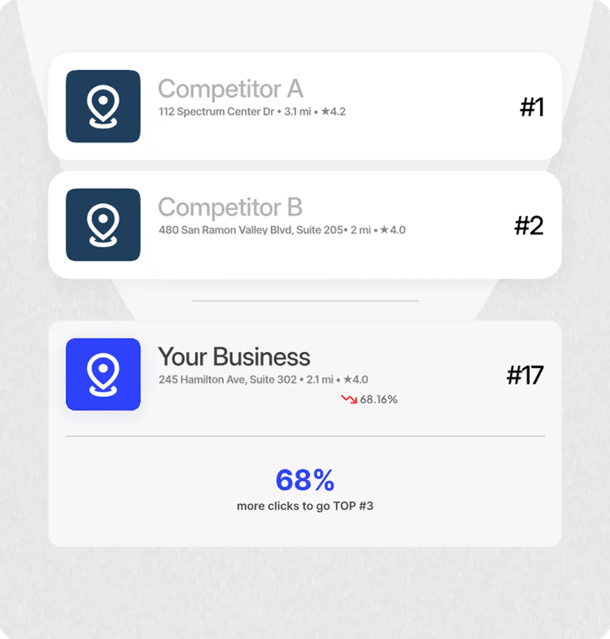 Start your free trial and see results before you pay. One business per location. If we're already working with a competitor in your area, we'll turn you away.